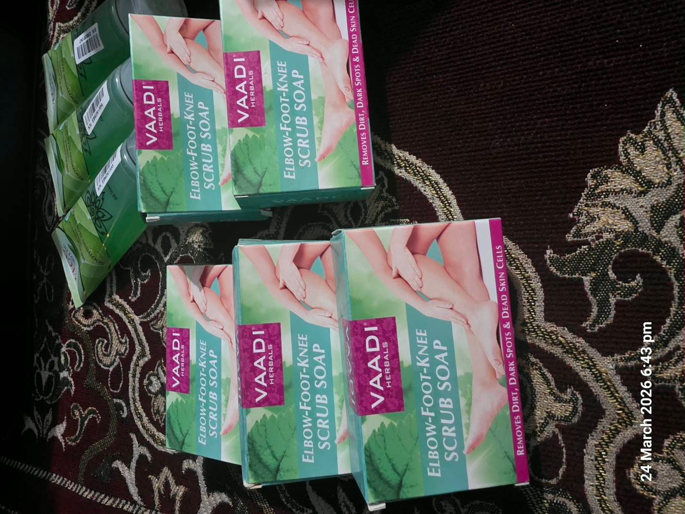 Vaadi herbals scrub soap is a great soap for all those ladies who wants a smooth and even tone skin. Pros- Sweet smell Easily removes dark skin cells results can be seen after two washes. Effective for elbows and finger darkness. My dark spots of fingers and elbows were reduced upto 70% within 1 week Cons: I found no cons for this product. I will recommend this to every women